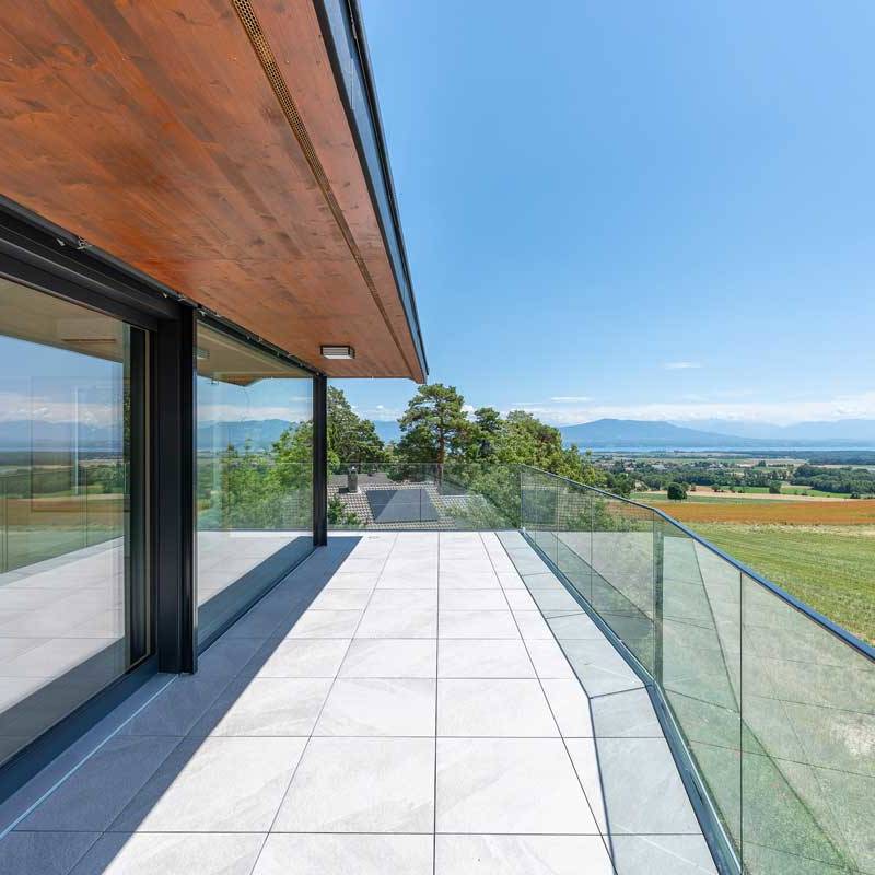 Depuis toutes les pièces, une vue panoramique à couper le souffle s’ouvre à 360° sur les champs, le Jura et le lac. Ce lien constant avec le paysage confère à la maison une atmosphère unique, où confort et nature cohabitent en parfaite harmonie.